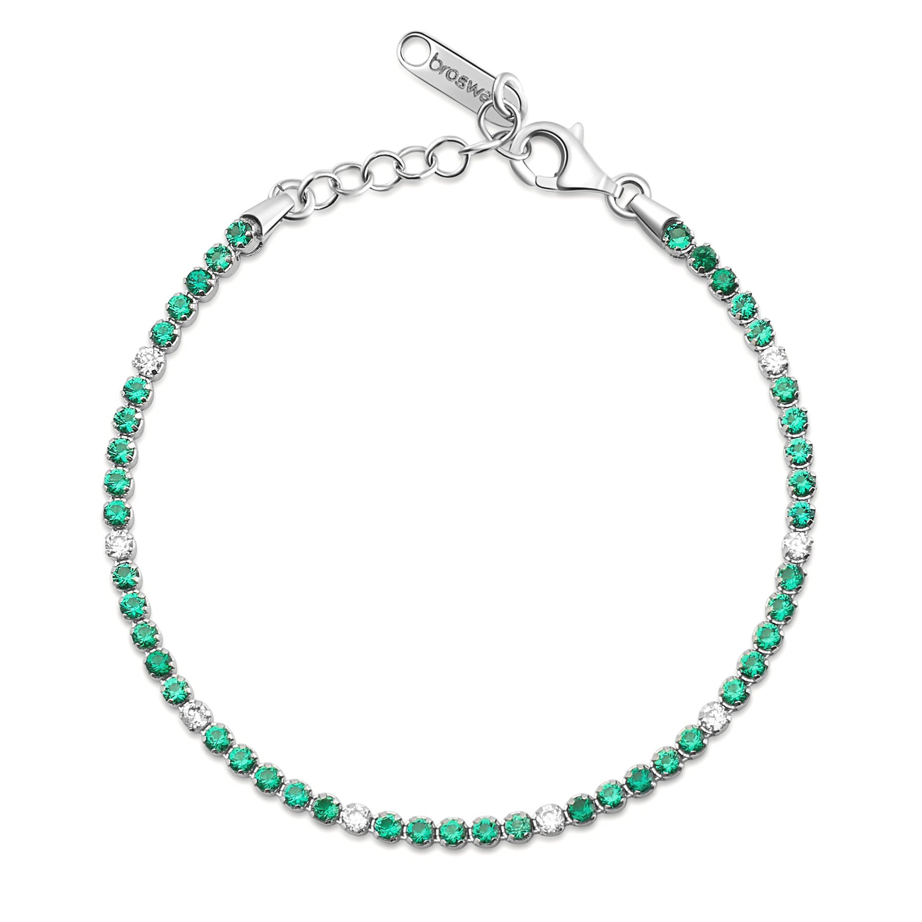 È realizzato in argento 925 con chiusura moschettone, con cristallo in colore verde.