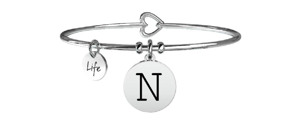 Bracciale Kidult rigido da donna della collezione ‘Symbols’ in stile trendy, con garanzia originale, nella confezione originale, con simbolo n, in acciaio, dal significato ‘Iniziale|Emozioni.È l’iniziale del tuo nome, di una persona speciale o di qualcuno che ti sta a cuore. La tua lettera preferita, il principio di una parola, una frase, una storia. La vita è un alfabeto di emozioni.’. La referenza del prodotto è AE138.