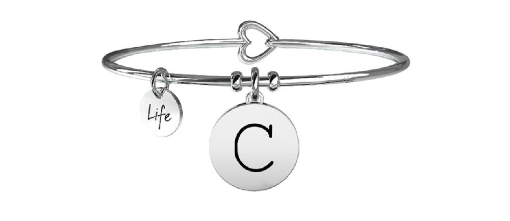 Bracciale Kidult rigido da donna della collezione ‘Symbols’ in stile trendy, con garanzia originale, nella confezione originale, con simbolo c, in acciaio, dal significato ‘Iniziale|Emozioni.È l’iniziale del tuo nome, di una persona speciale o di qualcuno che ti sta a cuore. La tua lettera preferita, il principio di una parola, una frase, una storia. La vita è un alfabeto di emozioni.’. La referenza del prodotto è AI006.