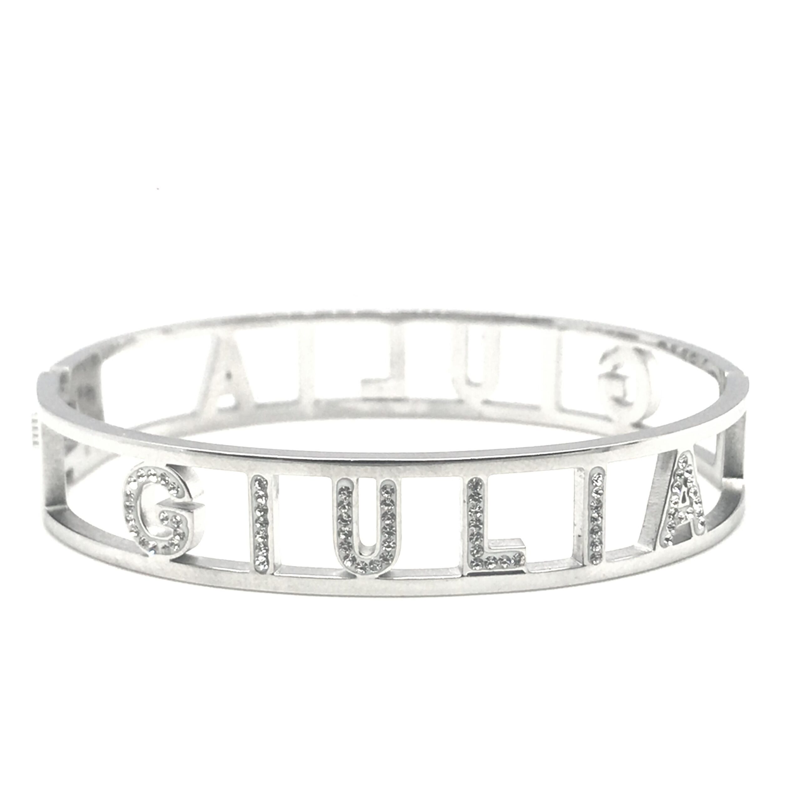 Bracciale rigido da 18 cm di lunghezza da donna in stile fashion e trendy, del brand Maludo, collezione My Name.
