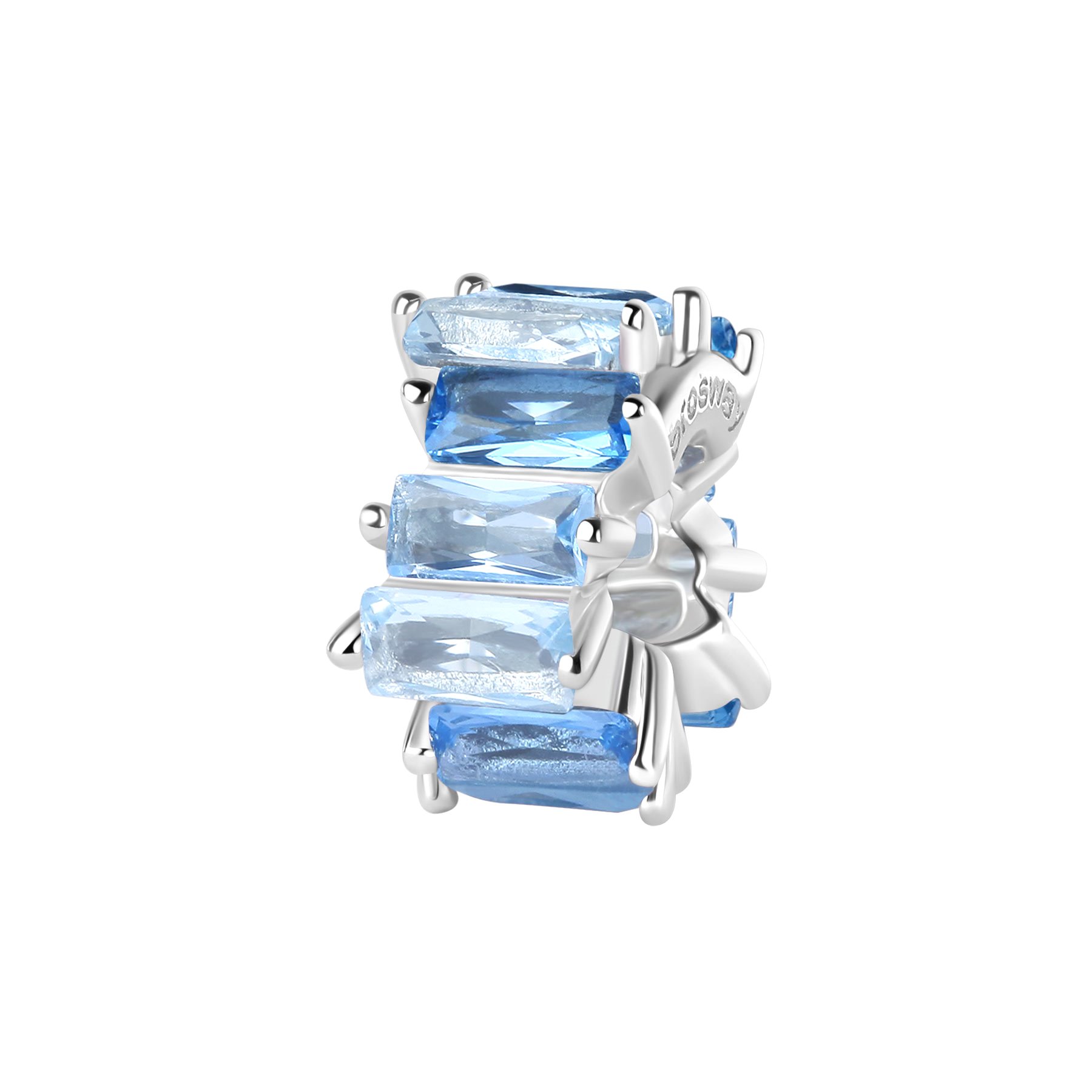 È realizzato in argento 925 trattamento rodiato, con cubic zirconia in colore light sapphire.