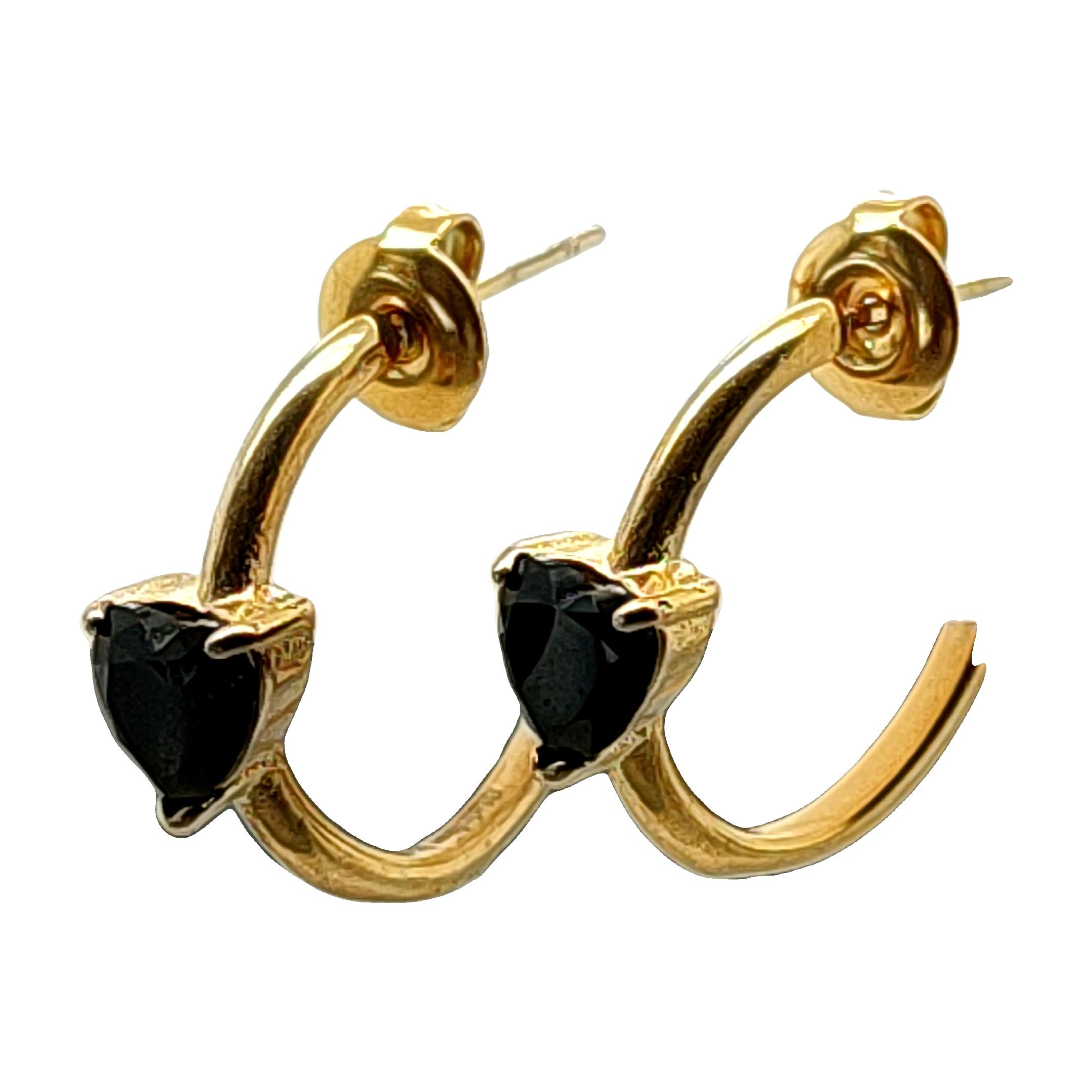 È realizzato in acciaio trattamento placcato oro giallo, con simbolo cuore, con zircone da 0.5 mm, in colore nero.
