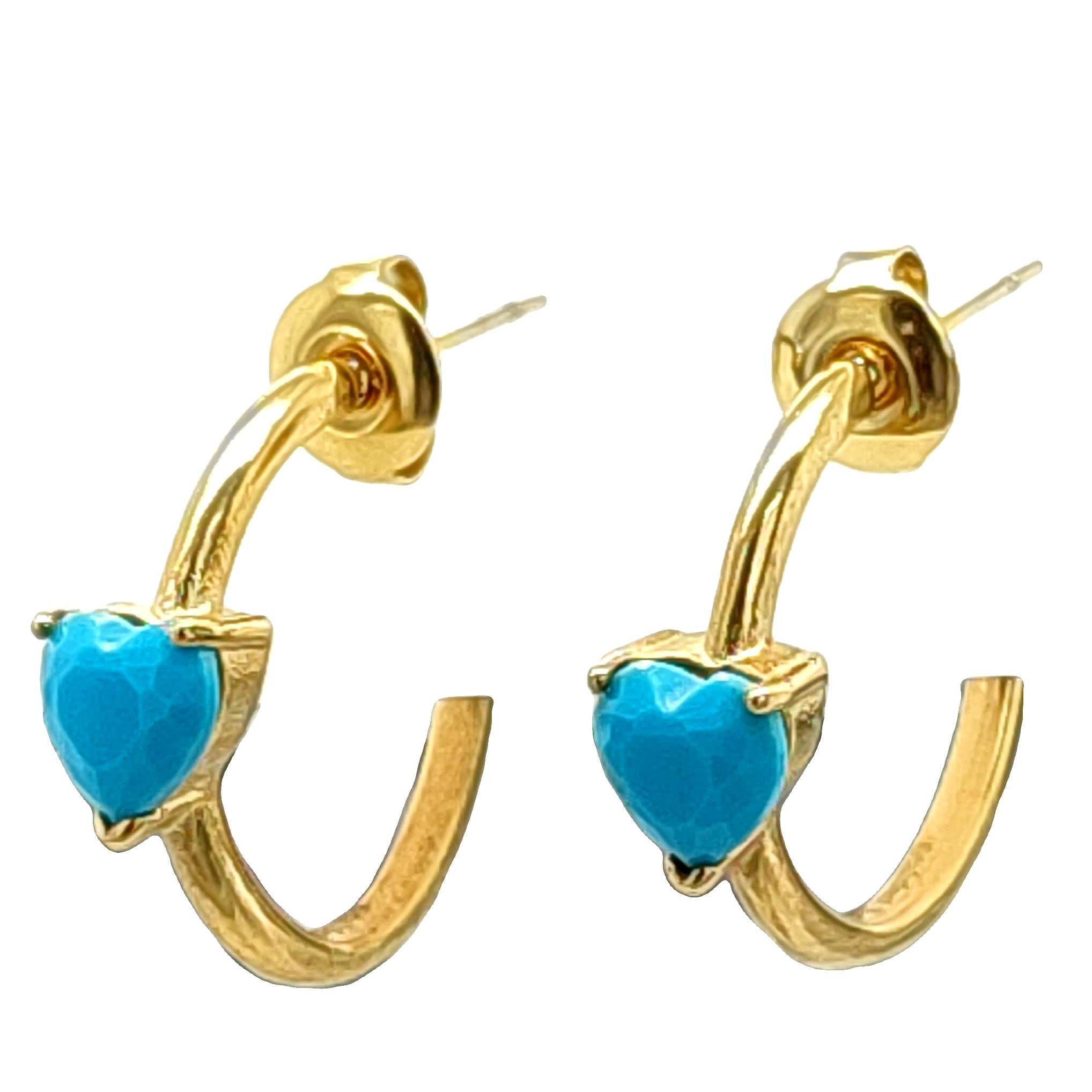 È realizzato in acciaio trattamento placcato oro giallo, con simbolo cuore, con zircone da 0.5 mm, in colore turchese.
