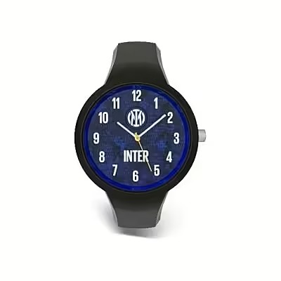 La cassa è di forma tonda da 38mm, in acciaio e silicone, con vetro in minerale, con quadrante in colore personalizzato con logo inter.