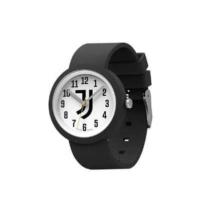 La cassa è di forma tonda da 38mm, in acciaio e silicone, con vetro in minerale, con quadrante in colore personalizzato con logo juventus.