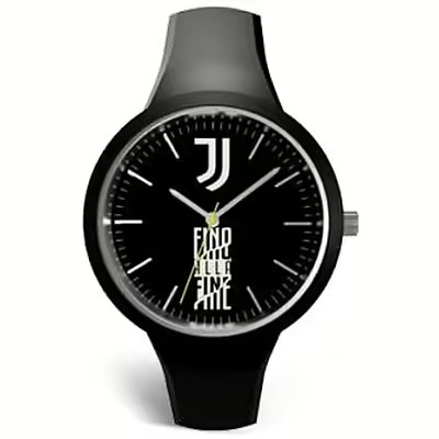 La cassa è di forma tonda da 37 mm, in acciaio e silicone, con vetro in minerale, con quadrante in colore personalizzato con logo juventus.